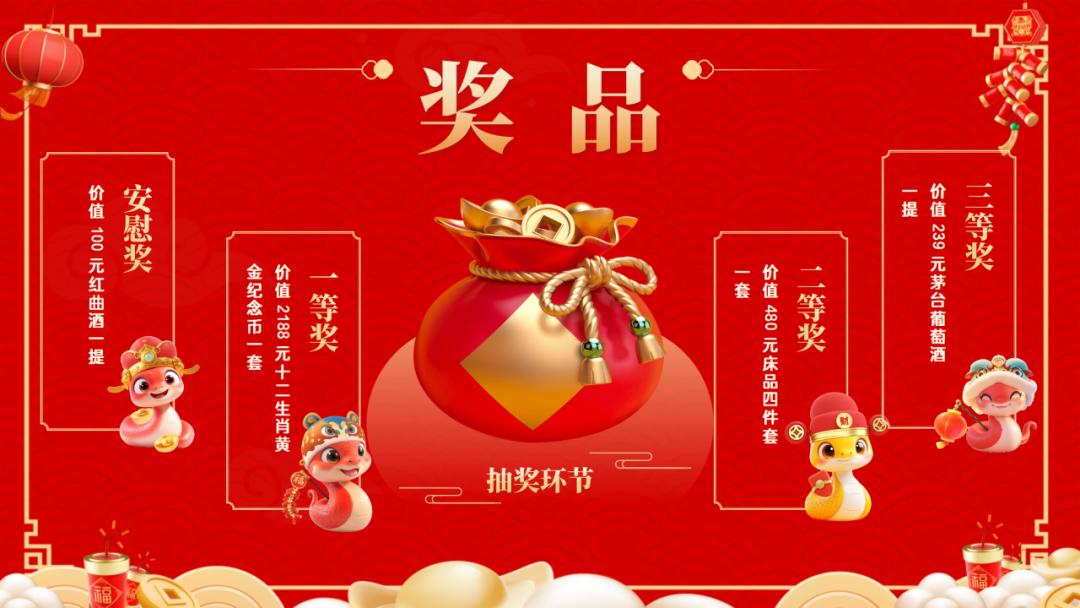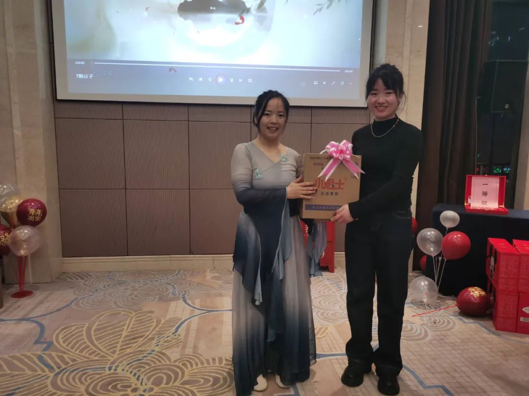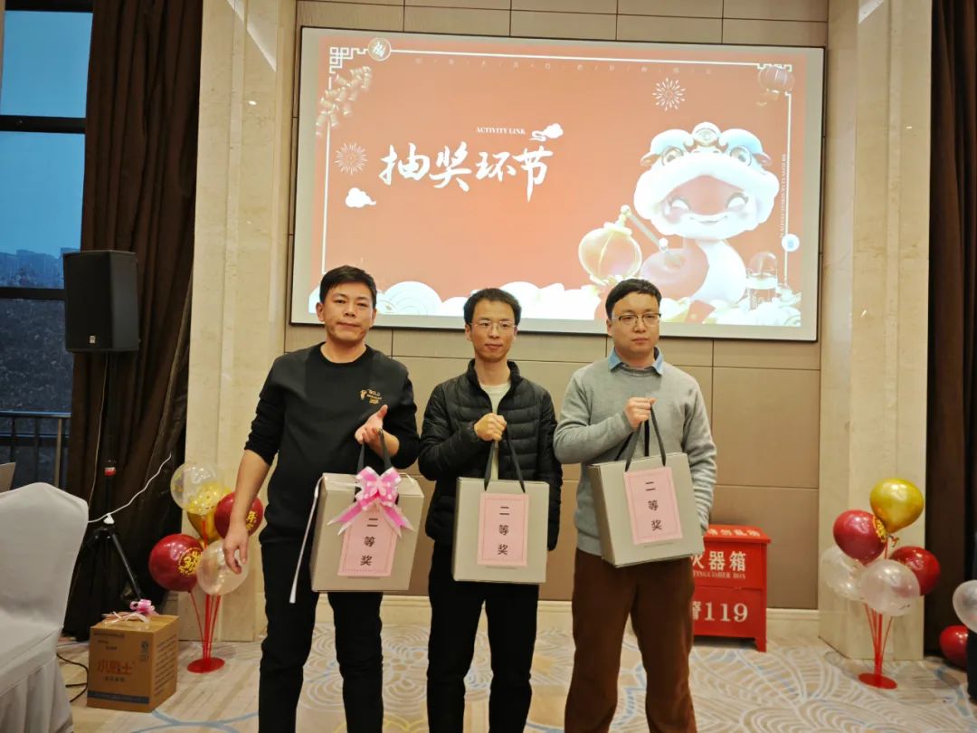 在節目表演過程中,還穿插了激動人心的抽獎環節。三輪抽獎,驚喜連連。多種多樣的獎項,每一位同事都收獲了屬于自己的那份幸運。抽獎的每一次揭曉,都伴隨著陣陣歡呼與掌聲,將年會的氛圍推向了高潮。豐厚的獎品讓員工們驚喜連連,歡呼聲不斷。