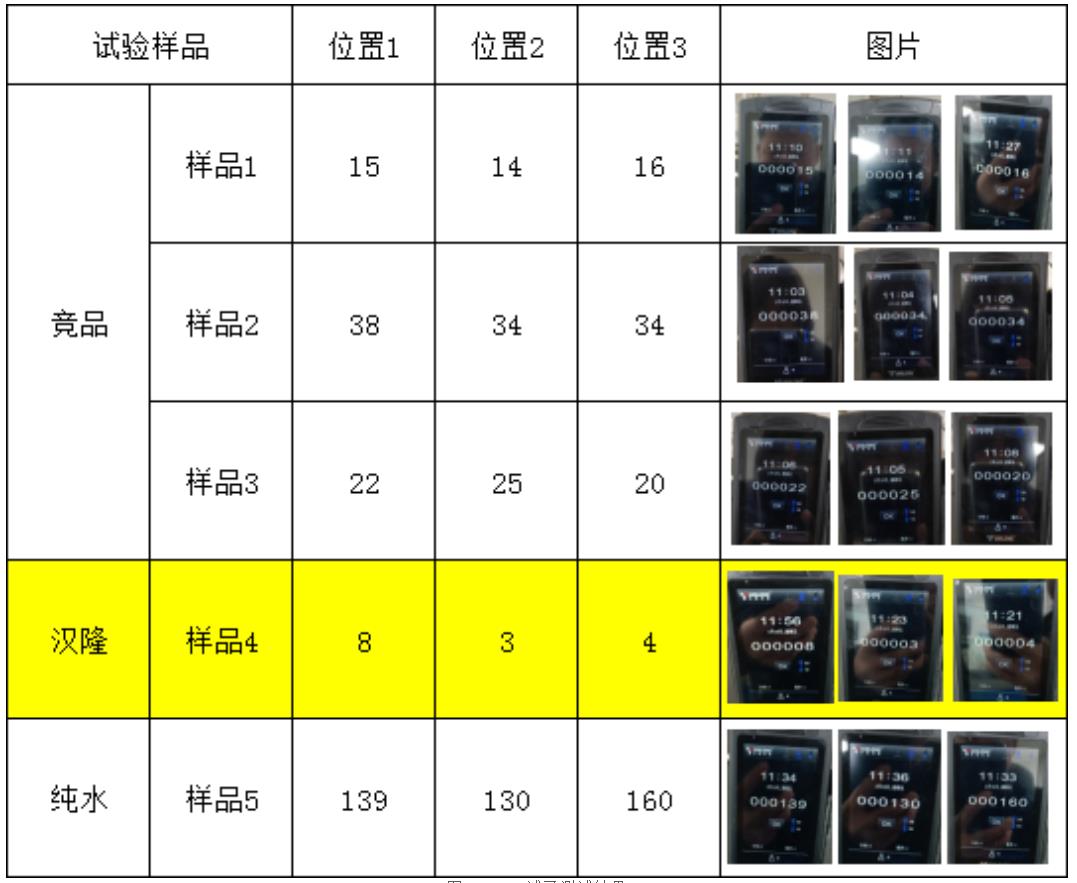清洗完畢,用ATP拭子測試結果如下(每組樣品均選3處不同位置測試):